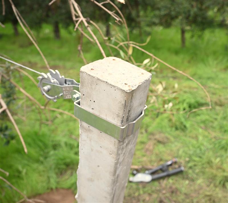 A wrap around bracket that is used for end posts on trellis systems. Can also be used to make an H-brace on long fencing applications.